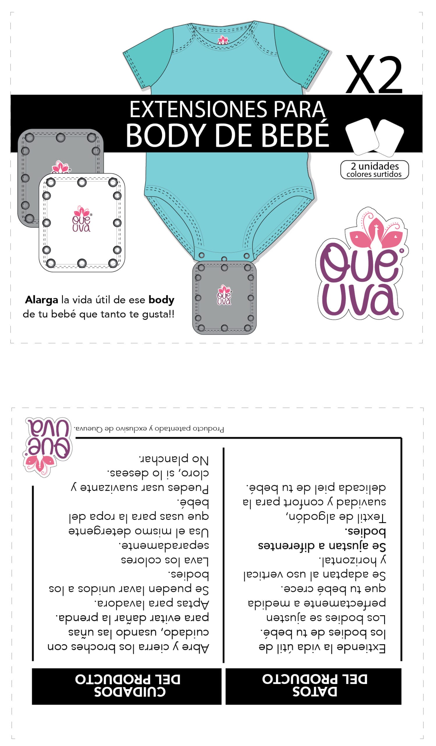Un ingenioso accesorio de tela diseñado para prolongar el tiempo de uso de los bodys de tu bebé, de esos bodys que tanto te encantan y que pensabas que ya no podrías usar.